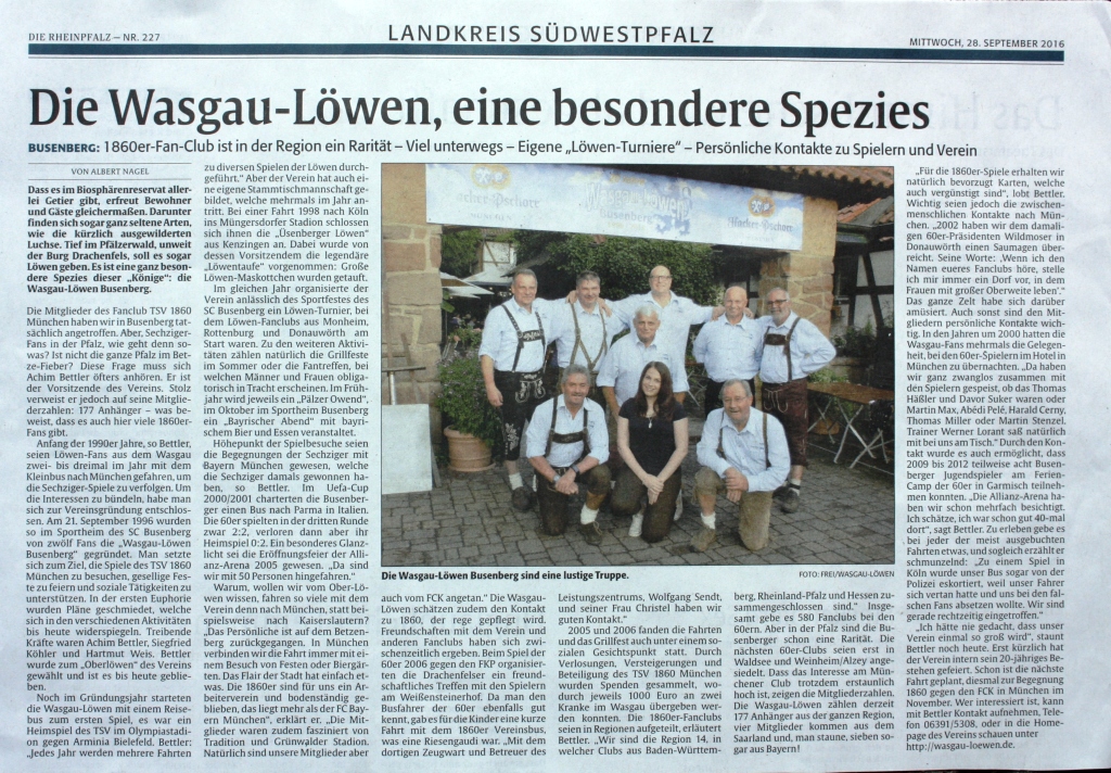 Bericht Wasgau Löwen vom 28.09.2016 Rheinpfalz